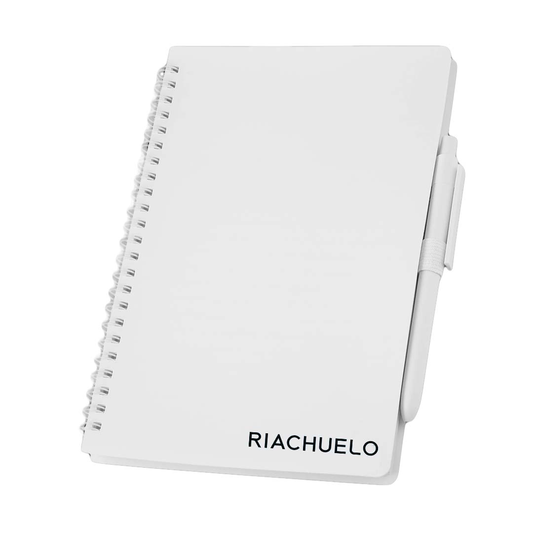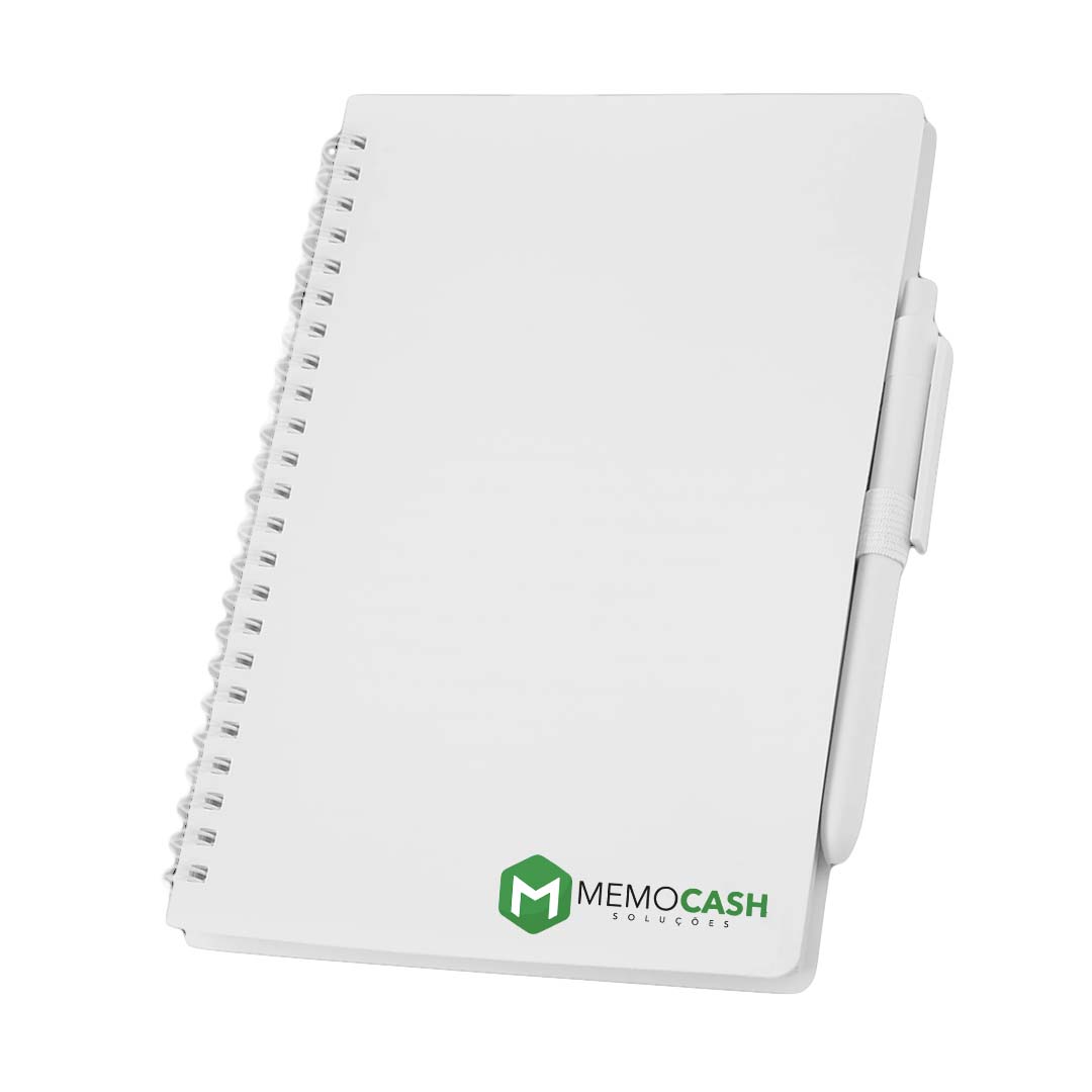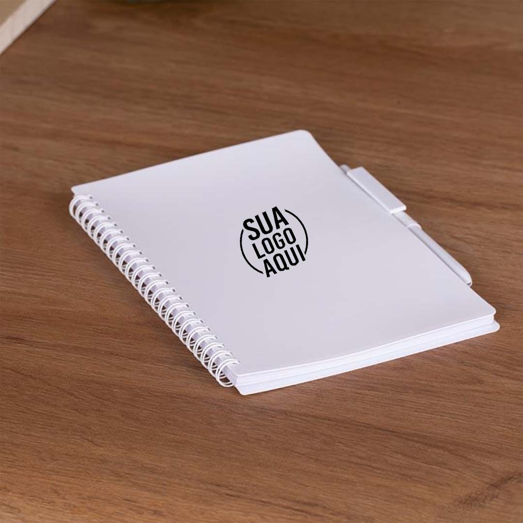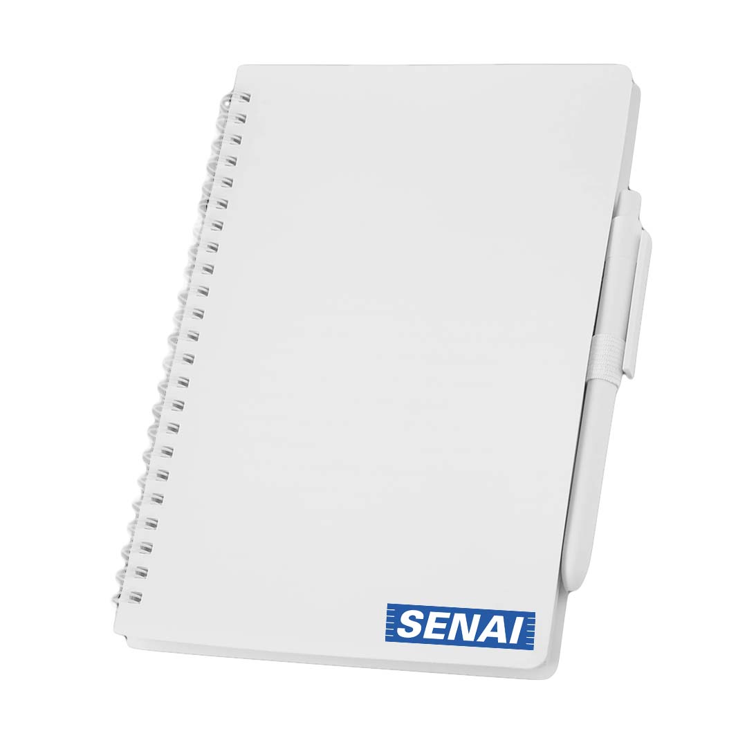 1 Caderno de Anotações – Tamanho 21x14cm, com capa resistente em PP misto, suporte para caneta e miolo com 70 folhas pautadas, papel de 70g/m².