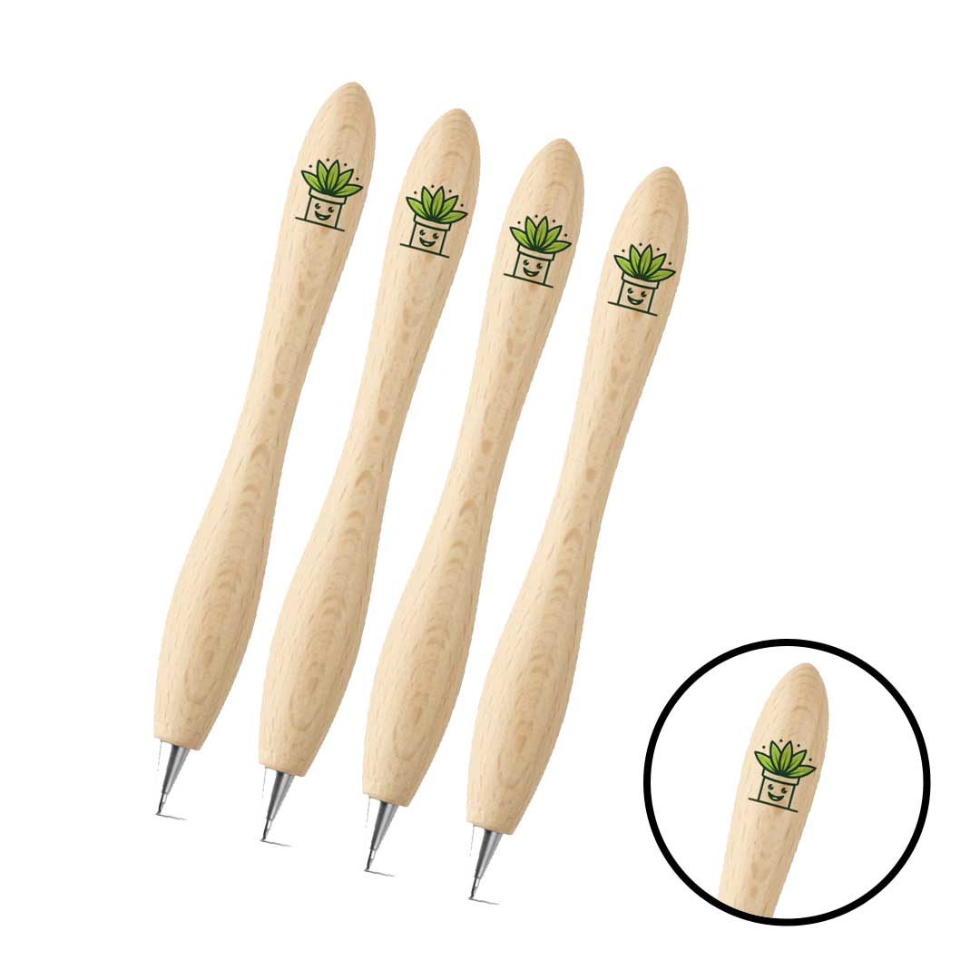 Caneta esferográfica produzida em madeira natural, com tampa transparente, combinando design moderno com consciência ambiental. Ideal como brinde sustentável.