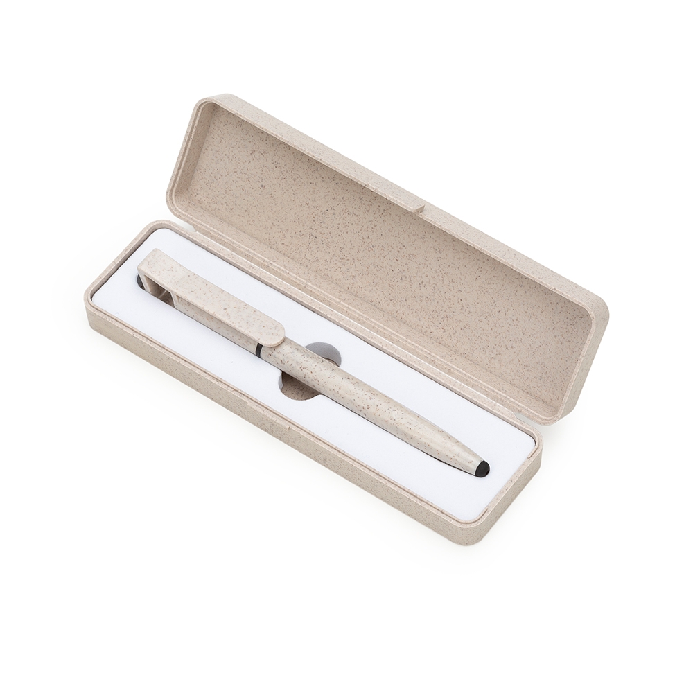 Estojo fibra de bambu para uma caneta, contém berço de espuma interno. Pedido mínimo 50 unidades