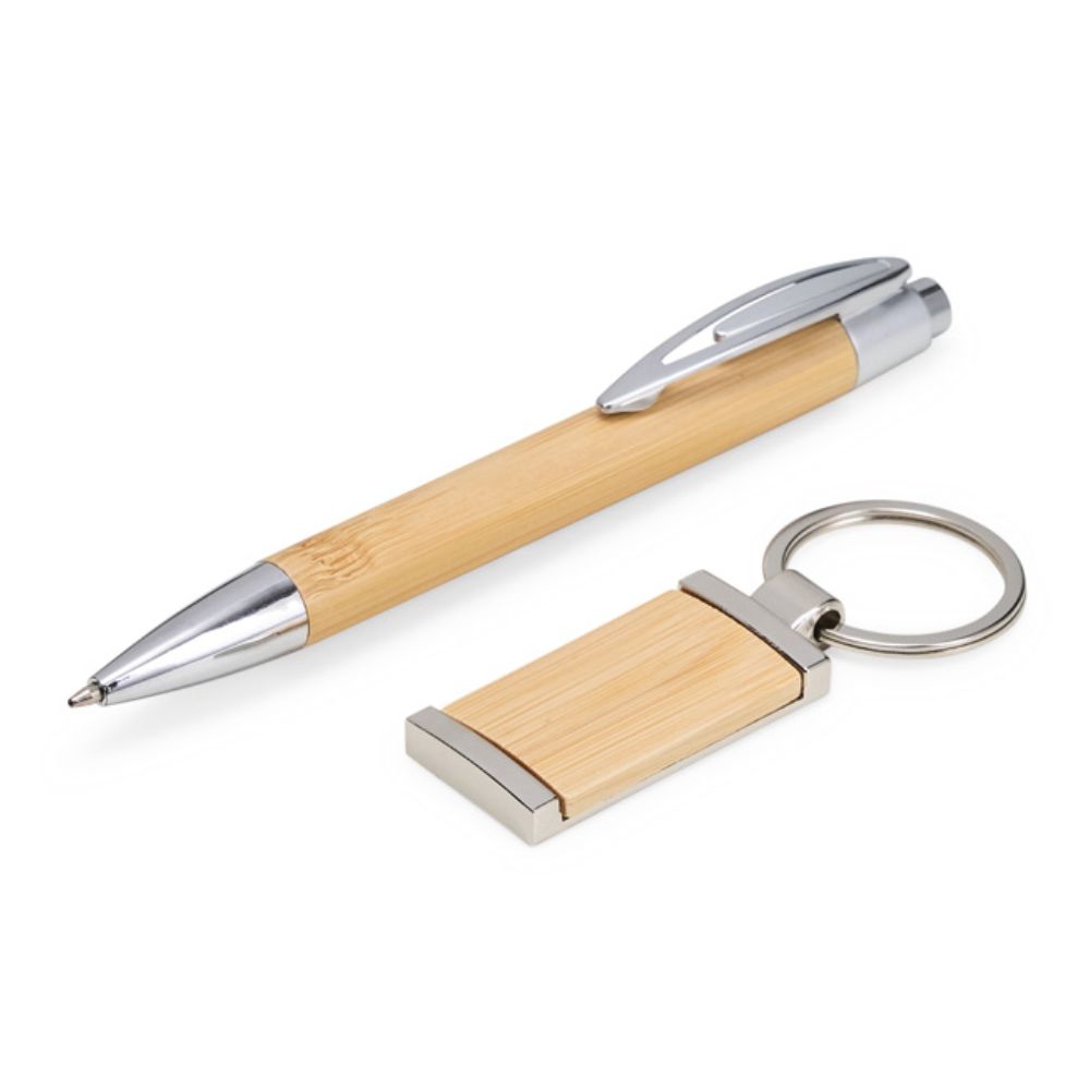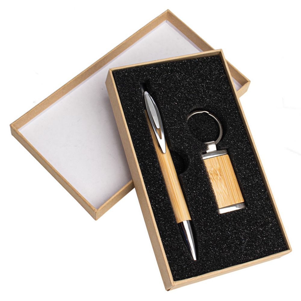 Este kit é a escolha ideal para quem aprecia praticidade e um design natural. O estojo com espuma interna mantém a caneta e o chaveiro bem organizados e protegidos, prontos para o uso. Combinando metal e bambu, as peças têm um visual elegante e resistente, destacando a beleza natural do bambu em cada detalhe. Uma opção funcional e charmosa, perfeita para o dia a dia ou para presentear com bom gosto e simplicidade.