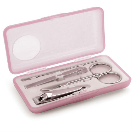 Conjunto de 4 peças para manicure: cortador de unhas, tesoura, pinça e empurra cutículas.